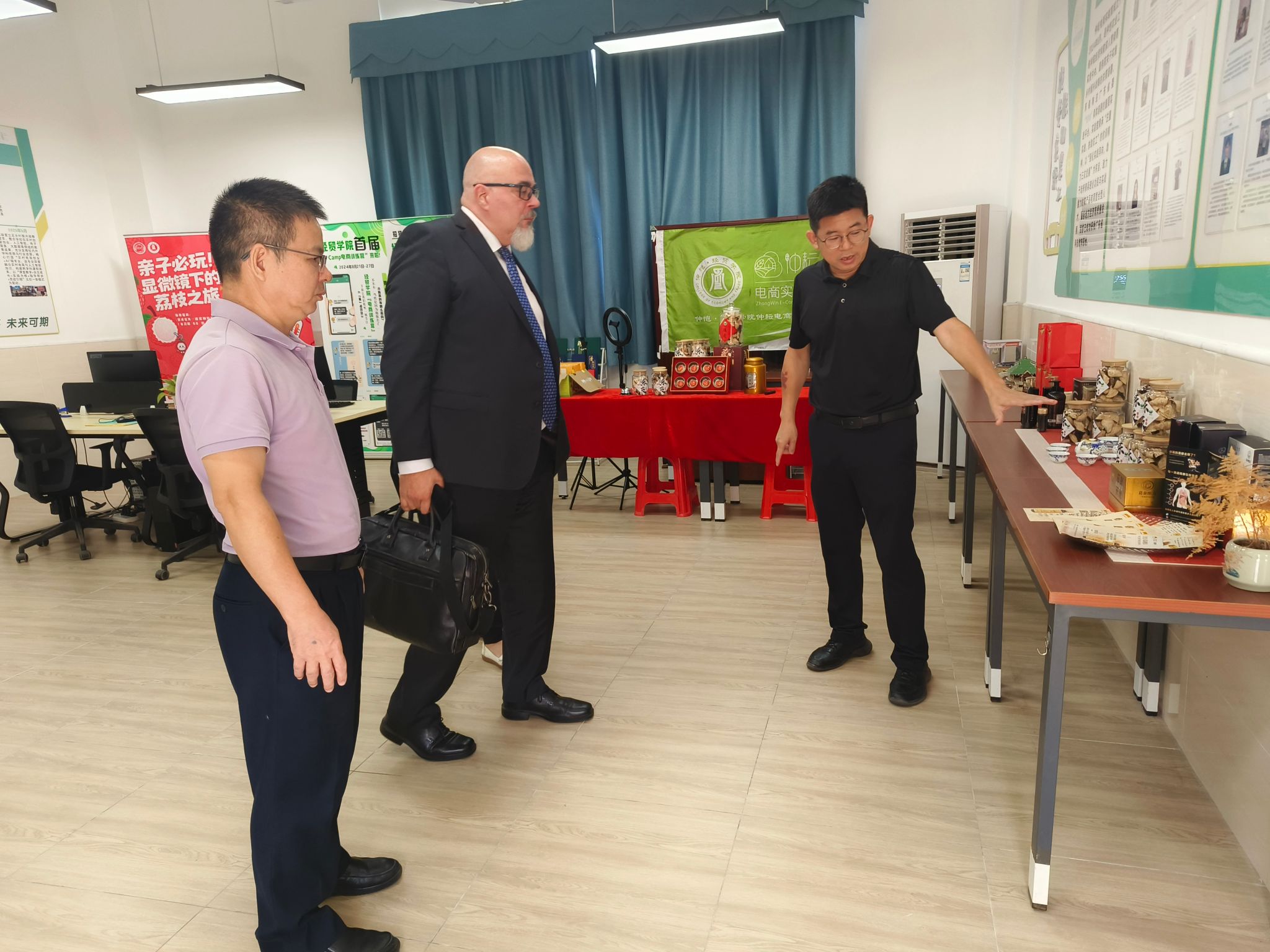 与会人员围绕合作模式、课程设置等议题展开深入交流。会后,代表团参观了经贸学院电商实验室,进一步了解我校在相关领域的实践教学情况。双方表示,期待携手推动合作项目落地见效,实现资源共享。